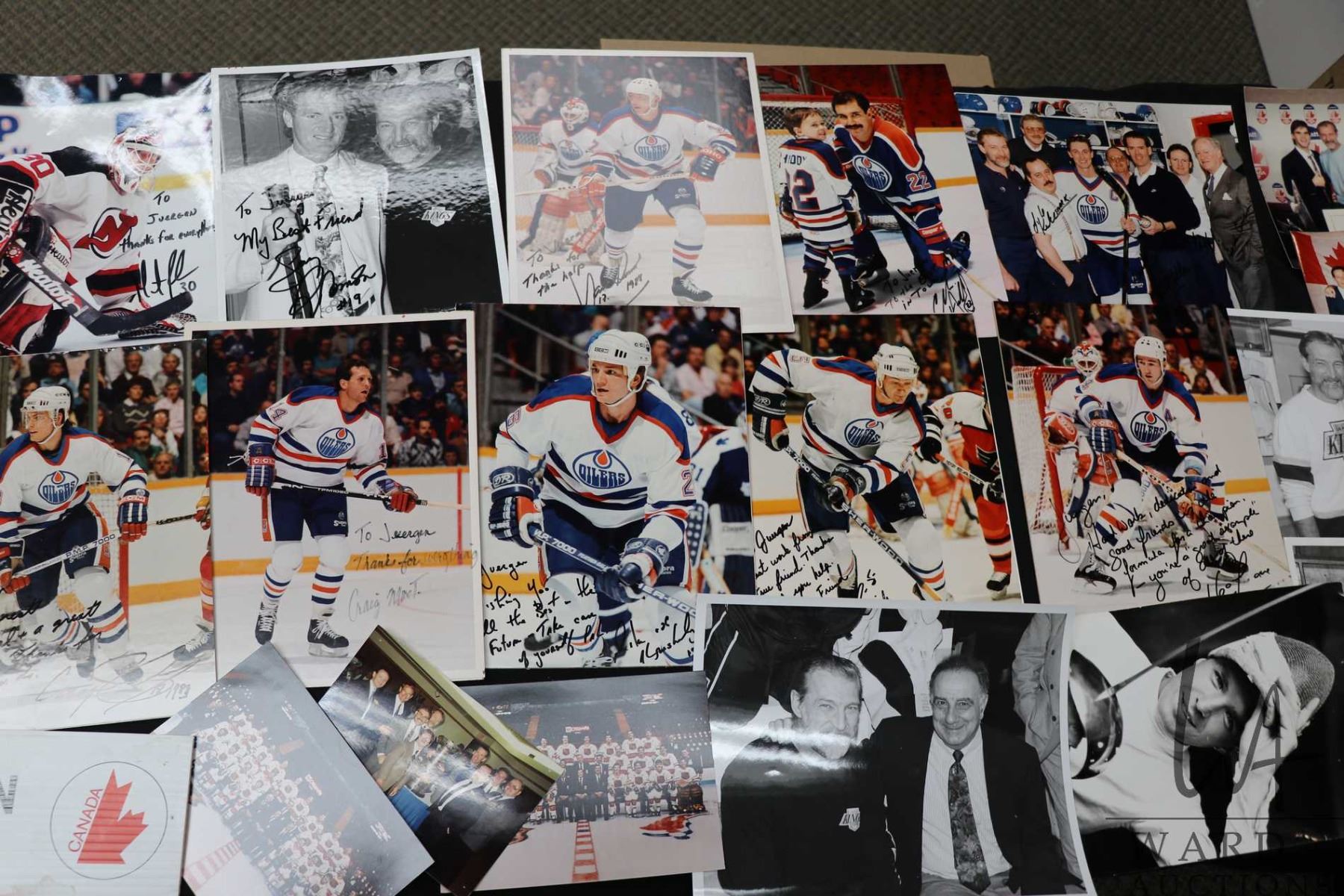 Large selection of colour and black and white promo photos, several hand signed including Kevin Lowe