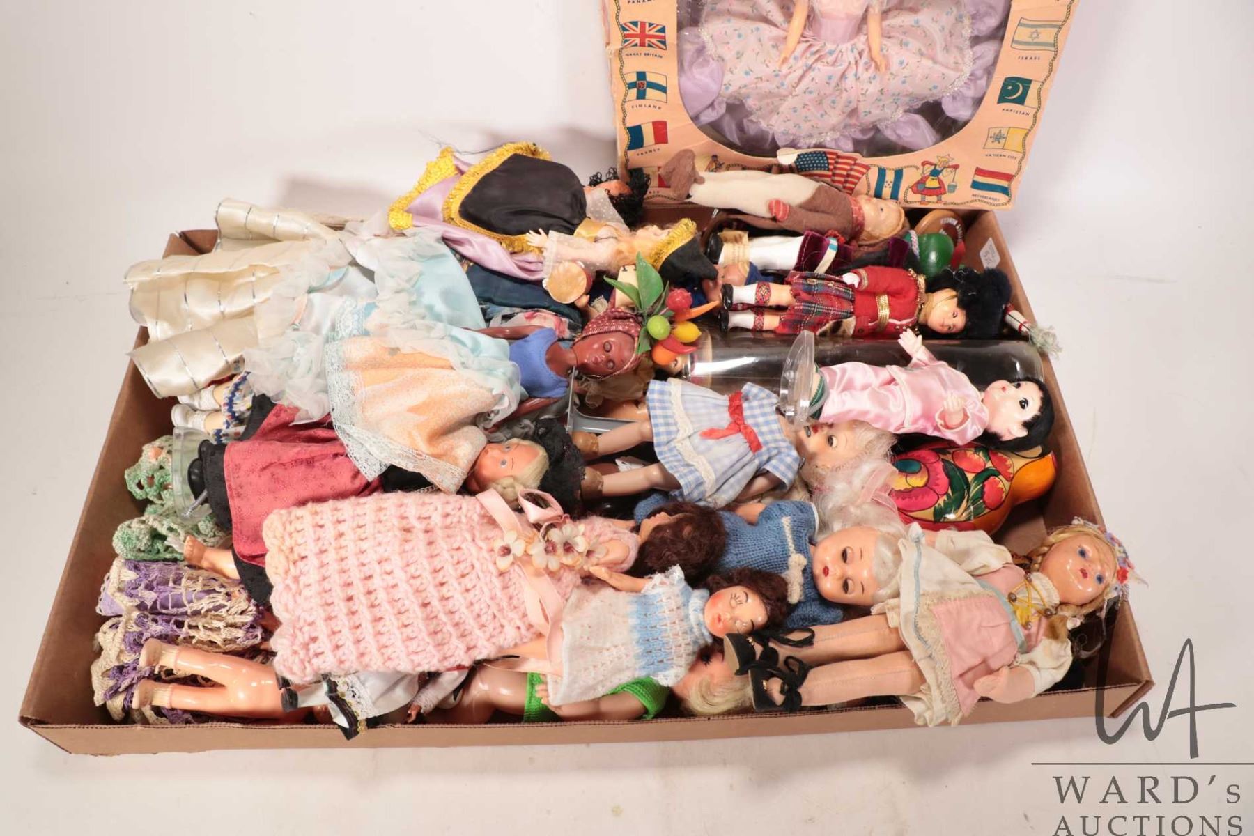 Large selection of small dolls including celluloid, story book, composition, hard plastic, cloth etc