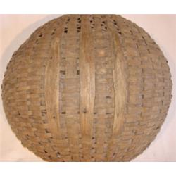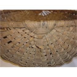 Large splint oak double handled gathering basket. Stands 10 3/4" tall and measures 20" in dia. Slight breakage of weave in several spots on bottom.