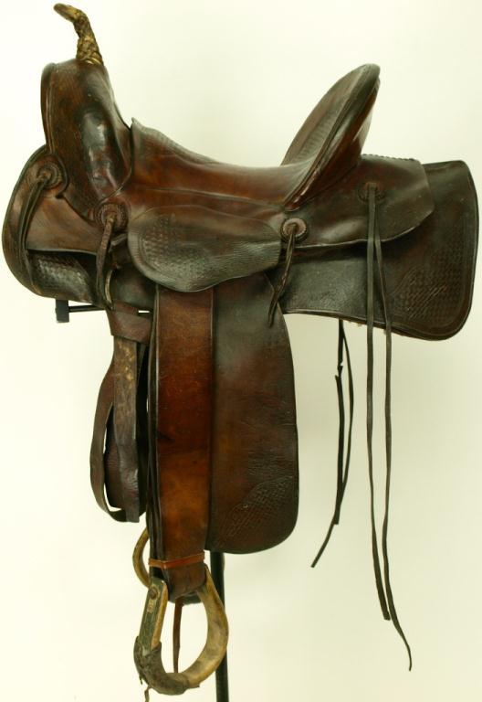 unreadable stamp in seat, braided rawhide horn, 5 1/2" cantle, 15" seat.