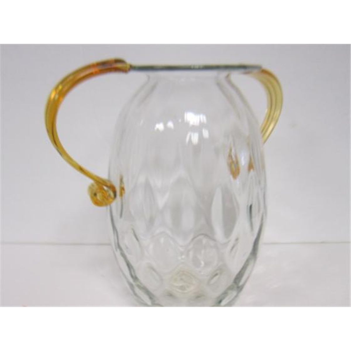 Large teardrop design clear glass vase with gold glass- applied handles-flat top-9 1/2" blown