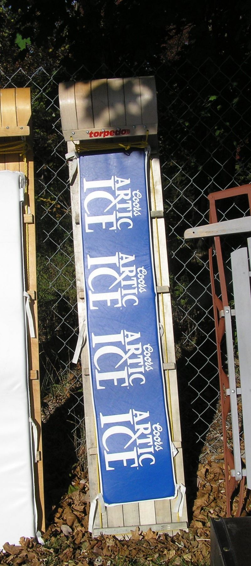 Large toboggan with Coor's Artic Ice promotional advertising customer to arrange pickup or shipping on this item est. value $200.00-$250.00