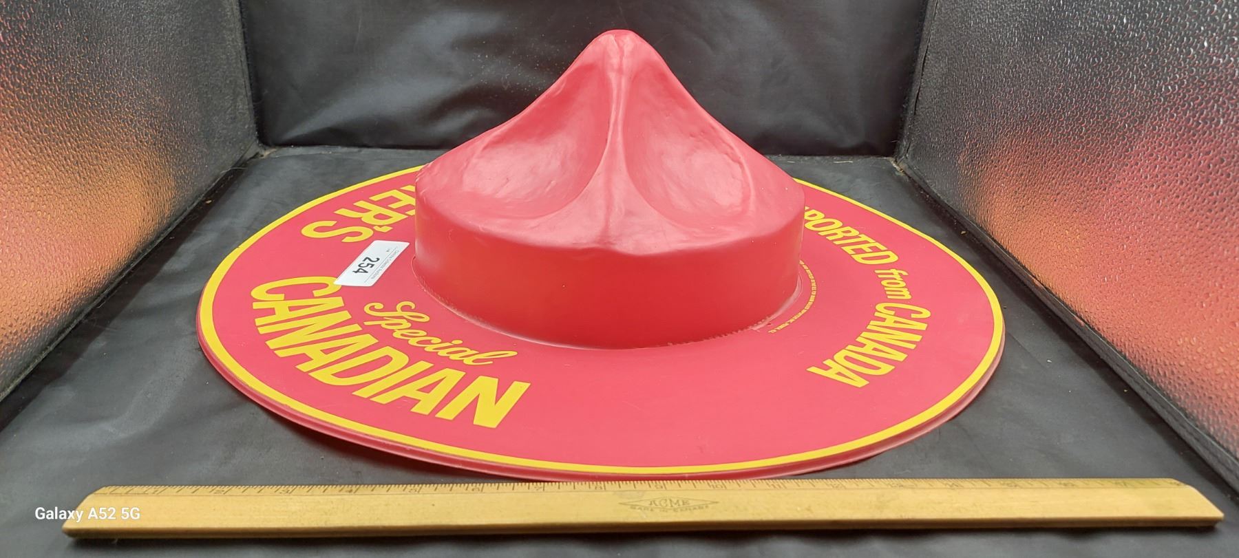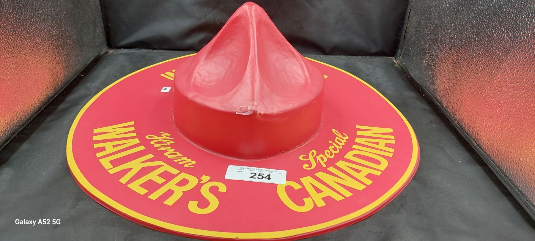 Large vintage RCMP hat advertisement for Hiram Walker's 19" diameter