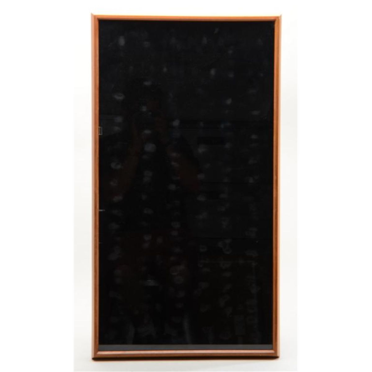 Large wood and glass display case with black lined interior, approx. 17” x 31” overall and in excellent condition. Could be used for display of a large badge or medal collection, pocket watches, etc. Est.: $100-$200.