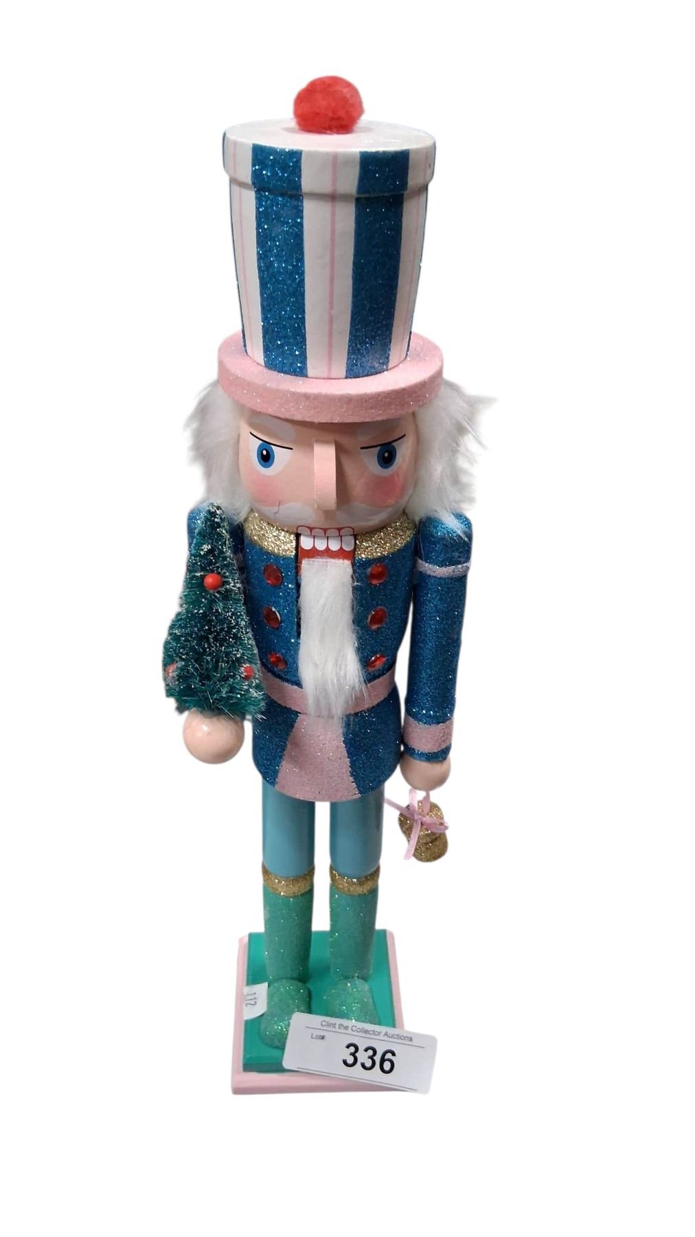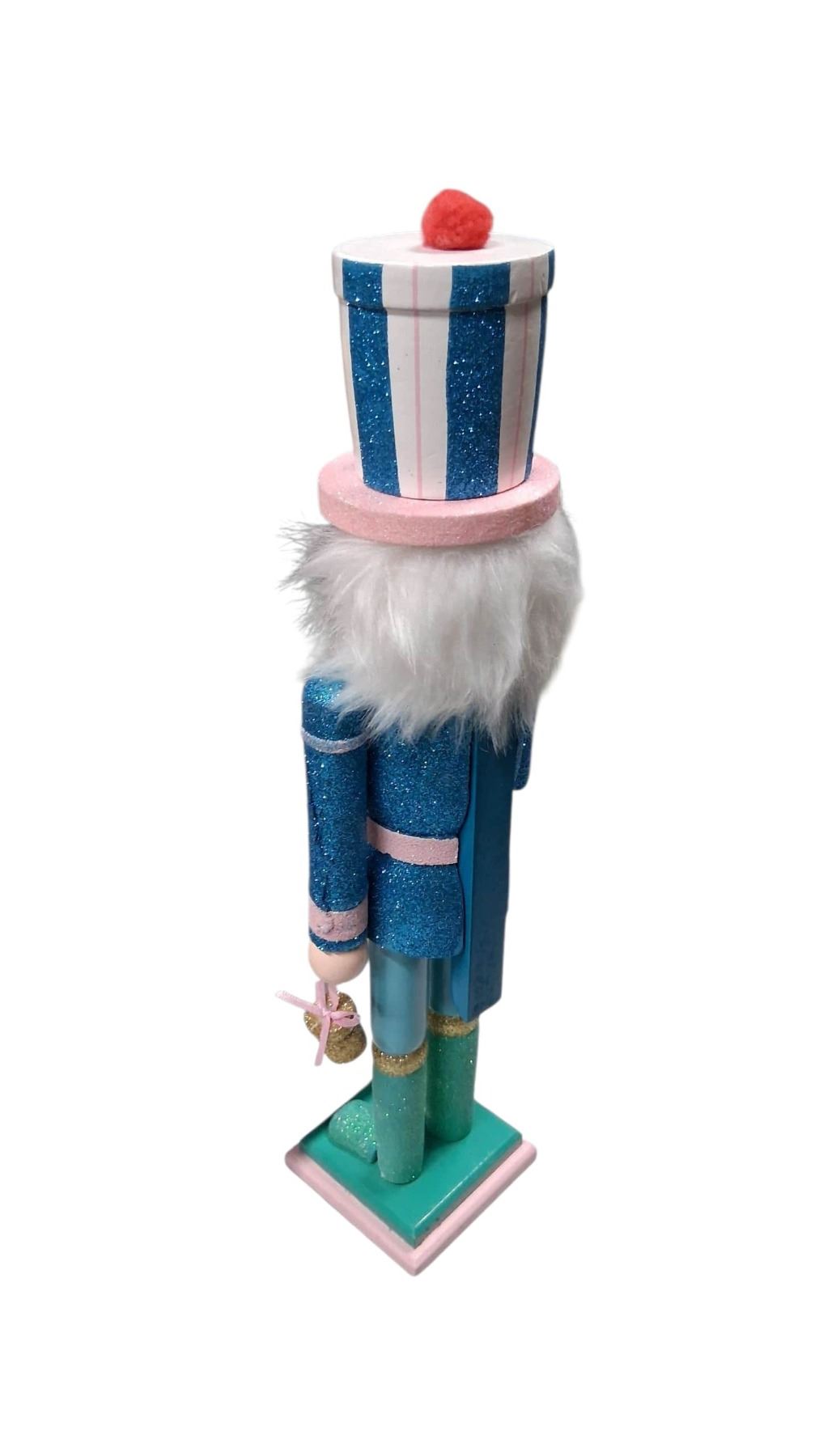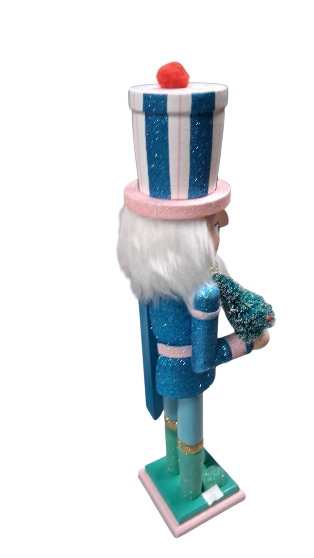Large wood nutcracker, sparkling blue, 15.5" tall
