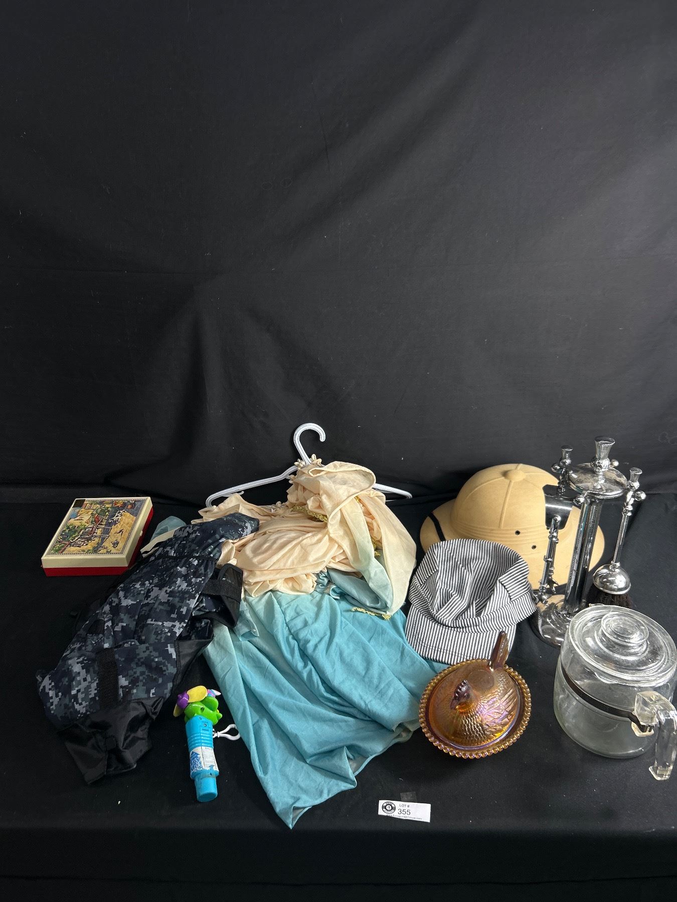 Largee Lot of Various Vintage Collectibles, Including Carnival Glass Hen on Nest