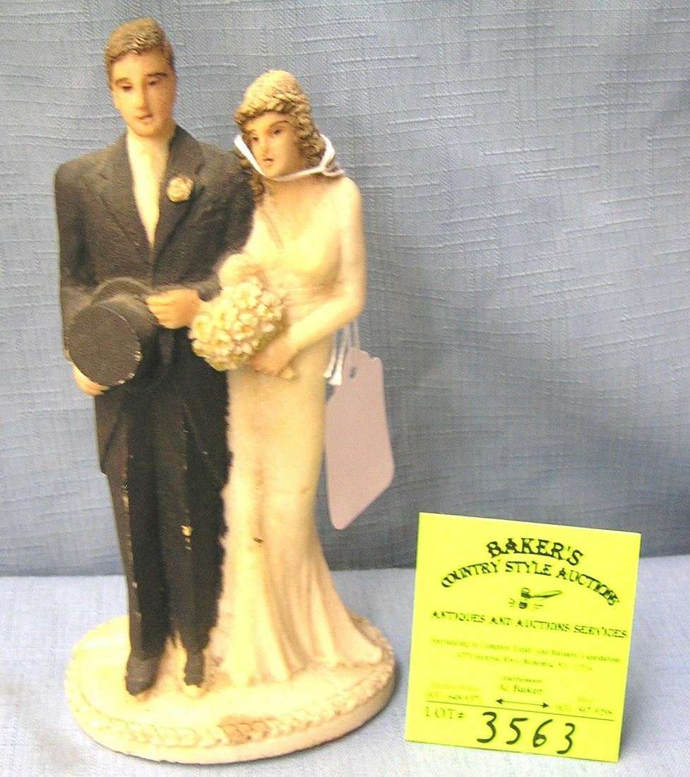 Larger hand painted composition bride and groom figure est. value $50.00-$60.00