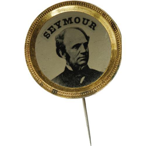 <B>Choice Larger-size 1868 Horatio Seymour Ferrotype Pin.</B></I> Superb, virtually pristine example with original pin. Diameter 23mm.