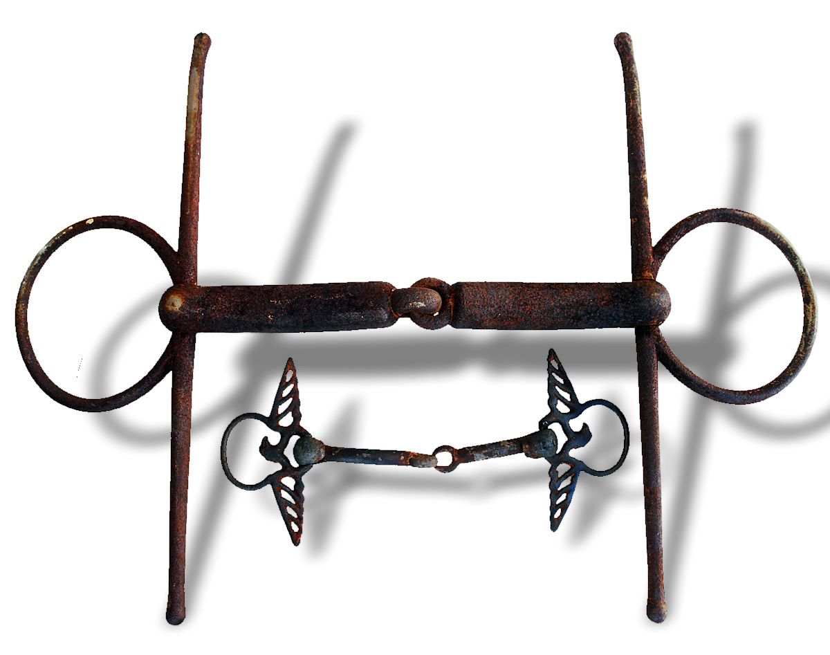 Largest driving bit in the world with a 12" mouth piece, 17" cheeks, 6" rings. It is pictured with the above normal size eagles driving bit. Quality crafted.