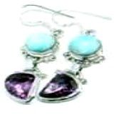 Silver and Larimar & Amethyst Earrings. Items are hand made as ordered so please allow 6 to 8 weeks for delivery.