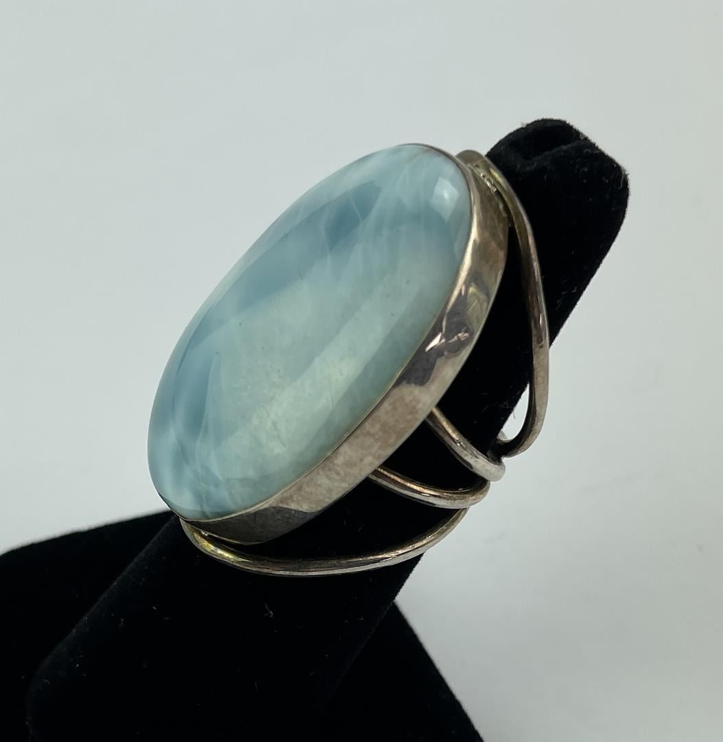 Very nice large ring. Larimar set in Sterling Silver. Size 6.