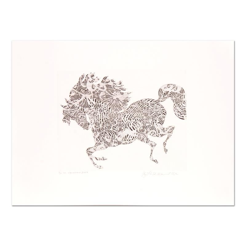 "Larlecchino" is a limited edition etching on paper by Guillaume Azoulay, numbered and hand signed by the artist. Includes Letter of Authenticity. Measures approx. 30" x 22" (border), 18" x 14" (image).