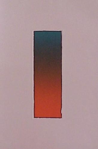UNTITLED ORANGE & BLUE, color etching, signed in pencil, from the numbered edition of 9 Roman numeral, image 11 ½ x 3 ¾”, sheet 30 x 22”, crease left edge, soft creases. $200/400