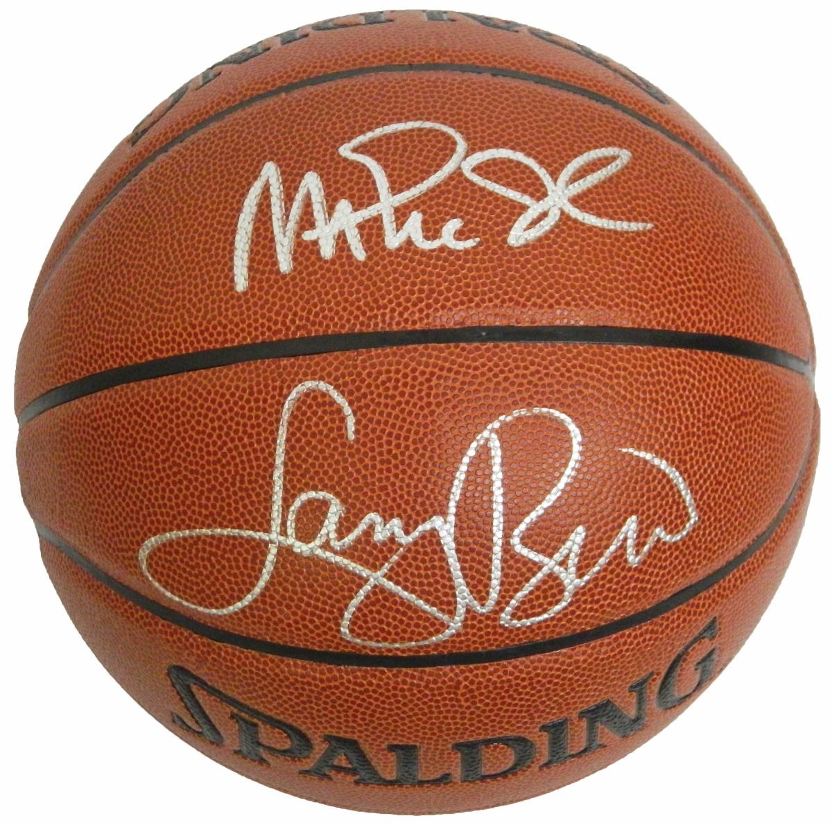 Larry Bird & Magic Johnson signed spalding NBA Indoor/Outdoor basketball. Item comes with the Larry Bird personal tamper-proof hologram and Schwartz Sports Memorabilia tamper-proof numbered hologram which can be verified online.