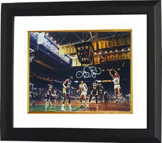 Larry Bird was more than just "the hick from French Lick." During his 13 years as a Boston Celtic he was the 1980 Rookie of the Year, a 12-time NBA All-Star and scored more than 21,000 career points. In addition to leading the Green and White to three championships, Bird was co-captain of the first U.S.A. Dream Team and led them to Olympic gold in 1992. Bird retired in 1992 and was inducted into the Basketball Hall of Fame in 1998. Larry Bird hand signed this 11x14 photo vs Magic Johnson/ Kareem Abdul-Jabbar. A Bird Hologram and Certificate of Authenticity from Athlon Sports. Custom White Mat and Premium Black Frame as shown.