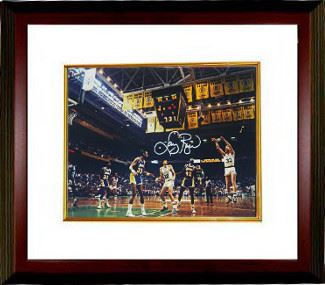 Larry Bird was more than just "the hick from French Lick." During his 13 years as a Boston Celtic he was the 1980 Rookie of the Year, a 12-time NBA All-Star and scored more than 21,000 career points. In addition to leading the Green and White to three championships, Bird was co-captain of the first U.S.A. Dream Team and led them to Olympic gold in 1992. Bird retired in 1992 and was inducted into the Basketball Hall of Fame in 1998. Larry Bird hand signed this 11x14 photo vs Magic Johnson/ Kareem Abdul-Jabbar. A Bird Hologram and Certificate of Authenticity from Athlon Sports. Custom White Mat and Premium Mahogany Frame as shown.