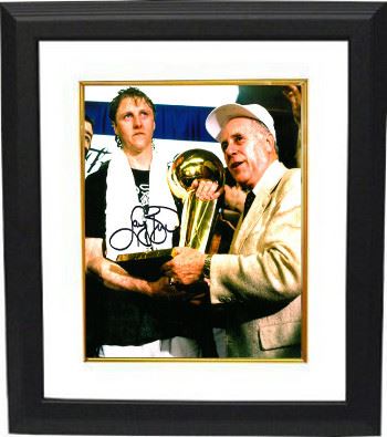 Larry Bird was more than just "the hick from French Lick." During his 13 years as a Boston Celtic he was the 1980 Rookie of the Year, a 12-time NBA All-Star and scored more than 21,000 career points. In addition to leading the Green and White to three championships, Bird was co-captain of the first U.S.A. Dream Team and led them to Olympic gold in 1992. Bird retired in 1992 and was inducted into the Basketball Hall of Fame in 1998. Larry Bird hand signed this 8x10 photo with Red Aurebach. Certificate of Authenticity from Athlon Sports. Custom White Mat and Premium Black Color Framed as shown.