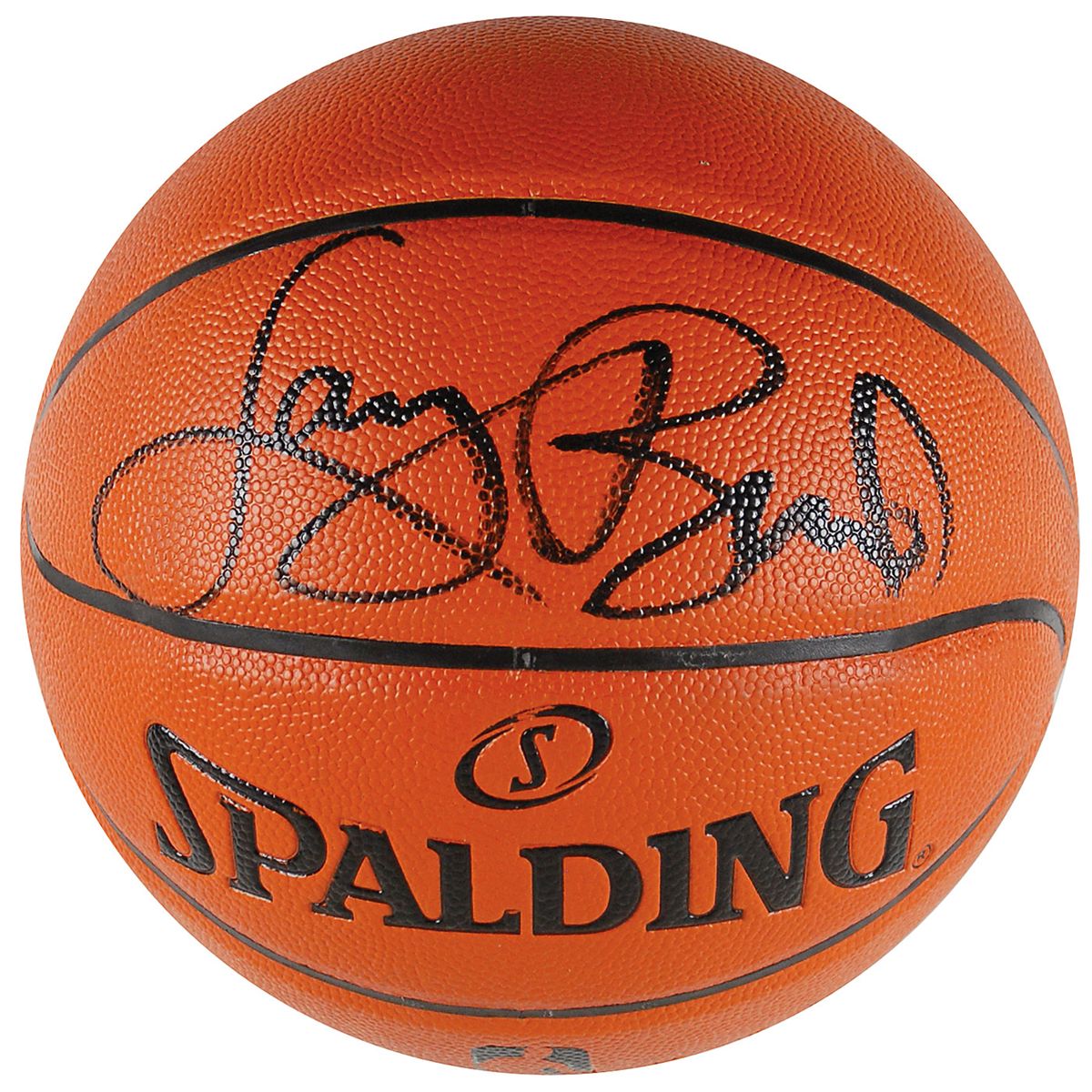 Official Spalding Game Ball Series Indoor/Outdoor basketball signed in black felt tip on a side panel. In fine condition, with a Larry Bird authentication label affixed near the NBA logo.