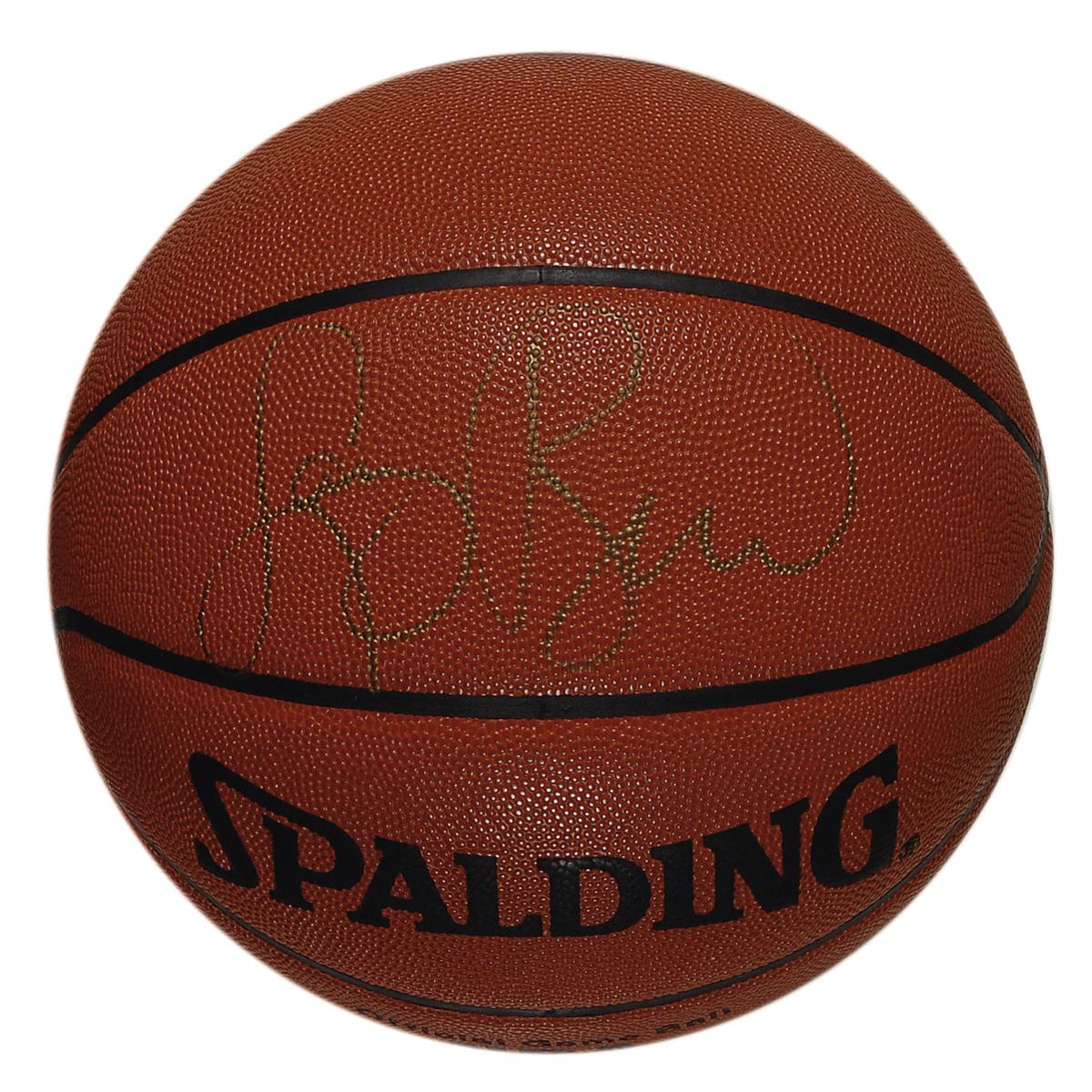 Official Spalding basketball signed in gold felt tip on a side panel. In fine condition with an Upper Deck authentication label affixed to another panel.