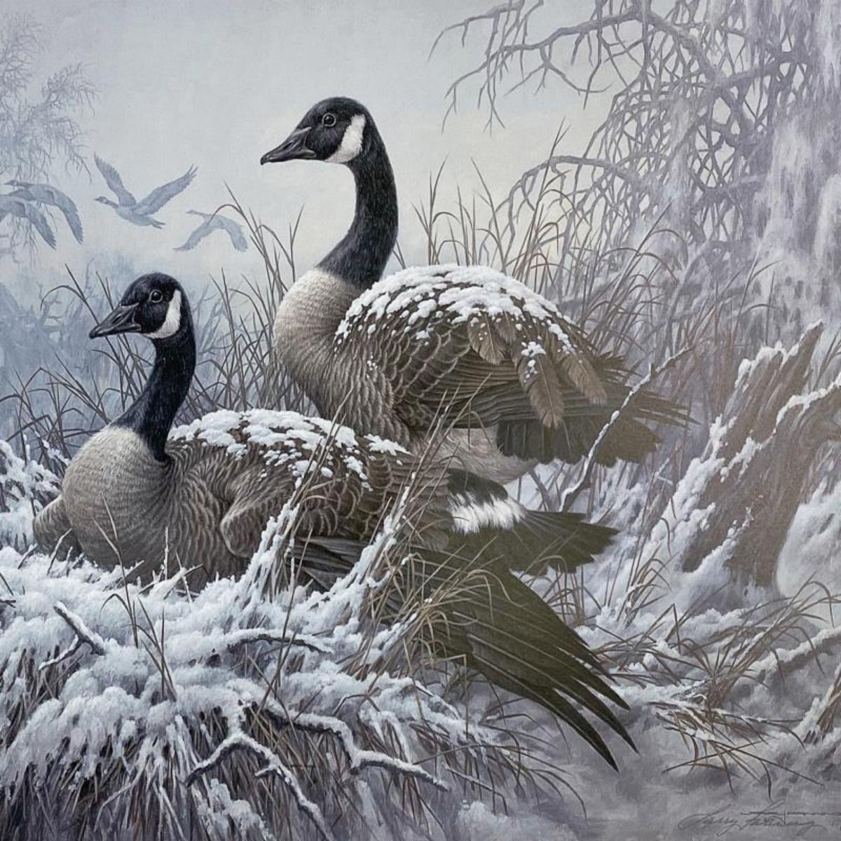 Larry Fanning (1938-2014), "April Snow - Canada Geese" Limited Edition Lithograph, Numbered and Hand