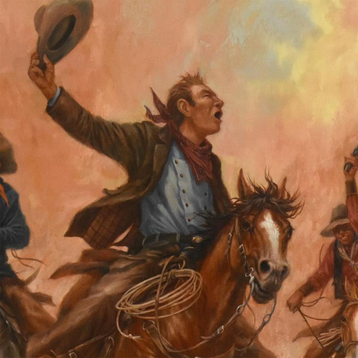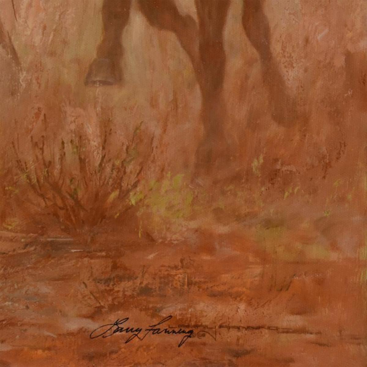 "Off To See The Elephant" is a limited edition giclee on canvas by Larry Fanning (1938-2014), AP numbered and hand signed by the artist. Includes Letter of Authenticity. Measures approx. 23.5" x 23.5" (image). Reference #: 248090.
