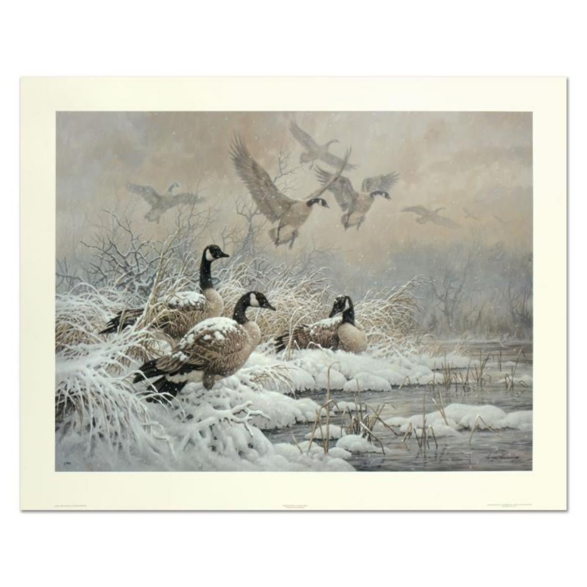 Larry Fanning (1938-2014), "Winter Retreat - Canada Geese" Limited Edition Lithograph, Numbered and