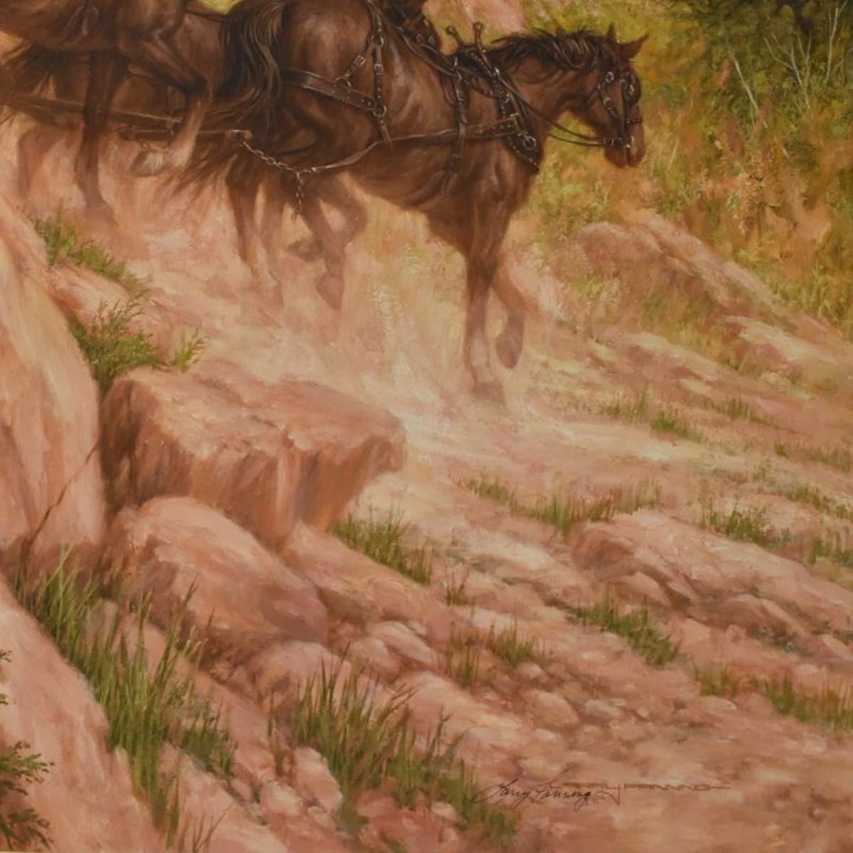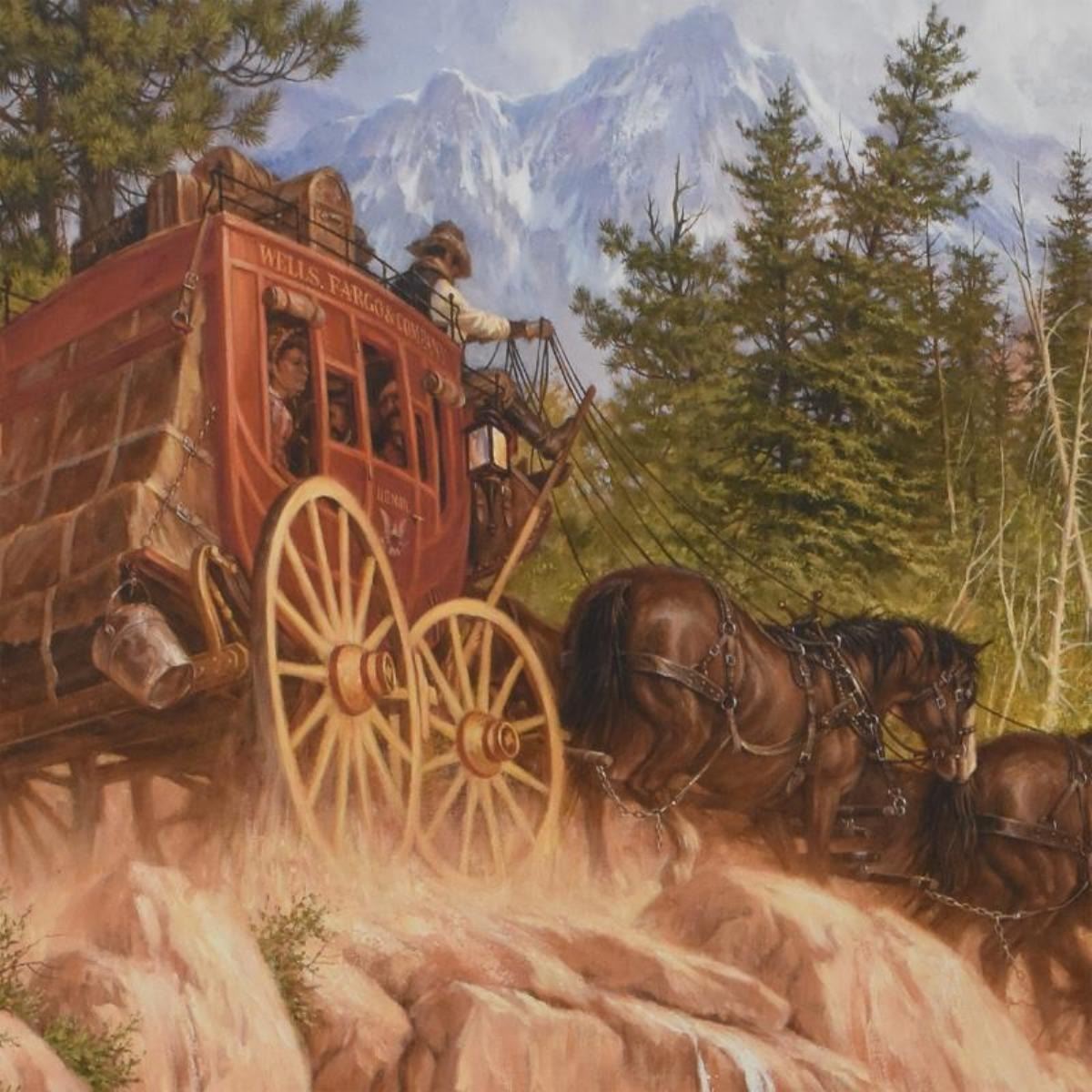 "Last Stage to Denver" is a limited edition giclee on canvas by Larry Fanning, APL numbered and hand signed by the artist. Includes Letter of Authenticity. Measures approx. 52" x 35" (image).