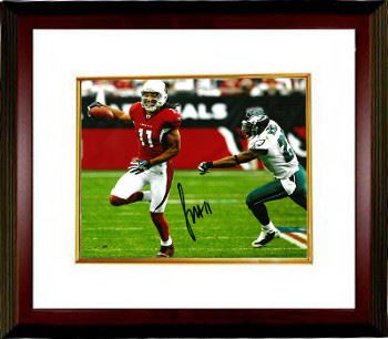 Larry Fitzgerald with the third overall pick in the 2004 NFL Draft by the Arizona Cardinals and he has played his entire professional career for the team. He has been selected for the Pro Bowl seven times, and currently ranks fifth all-time in NFL history in receiving yards per game for a career, behind Calvin Johnson, Andre Johnson, Torry Holt, and Marvin Harrison. On November 24, 2013, at 30 years and 85 days of age, he became the youngest NFL receiver to reach 11,000 career receiving yards, surpassing the previous record-holder, Randy Moss. He agreed to an eight-year, $120 million contract extension on August 20, 2011. Larry Fitzgerald has hand signed this Arizona Cardinals 8x10 Photo. Certificate of Authenticity from Athlon Sports. Custom White Mat and Premium Mahogany Color Framed as shown.