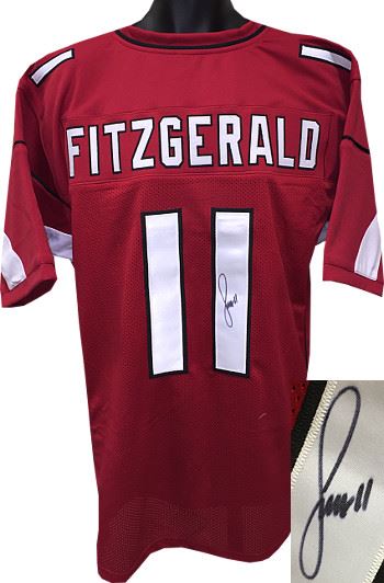 Larry Fitzgerald with the third overall pick in the 2004 NFL Draft by the Arizona Cardinals and he has played his entire professional career for the team. He has been selected for the Pro Bowl seven times, and currently ranks fifth all-time in NFL history in receiving yards per game for a career, behind Calvin Johnson, Andre Johnson, Torry Holt, and Marvin Harrison. On November 24, 2013, at 30 years and 85 days of age, he became the youngest NFL receiver to reach 11,000 career receiving yards, surpassing the previous record-holder, Randy Moss. He agreed to an eight-year, $120 million contract extension on August 20, 2011. Larry Fitzgerald has hand signed this Arizona Cardinals Red Prostyle Jersey #11 Size XL. Certificate of Authenticity from Athlon Sports Collectibles. Close up of signature shown at bottom right.