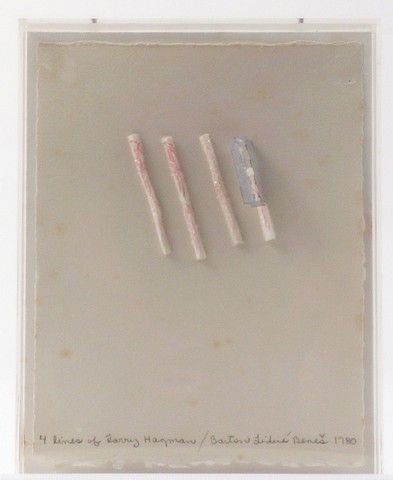 From celebrated and controversial artist Barton Lidice Benes, this is one of four assemblages that he made for one of his biggest collector's and benefactor, Larry Hagman. This one is entitled "For Lines Of Larry" (1980). From the Larry Hagman estate. Size: 9 ½x 7 ½ . Professionally appraised at $1,500.