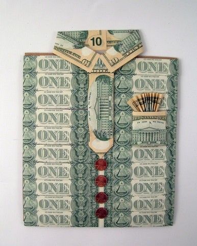 Celebrated international artist Barton Lidice Benes was well known for using "mixed media" for his astonishing pieces of art. One of his favorite materials was actual US currency, both whole and shredded. This piece, from Larry Hagman's personal Fine Art collection is called "Men’s Button-down Shirt", and is an actual "shirt and tie" made entirely of one-dollar and ten-dollar bills with shiny pennies as the buttons! Size: 12”x 10”. From Larry Hagman's estate. Professionally appraised at $1,500.