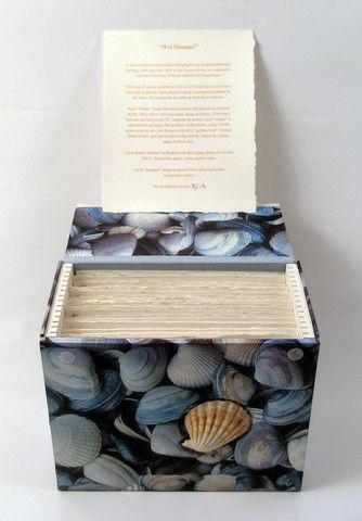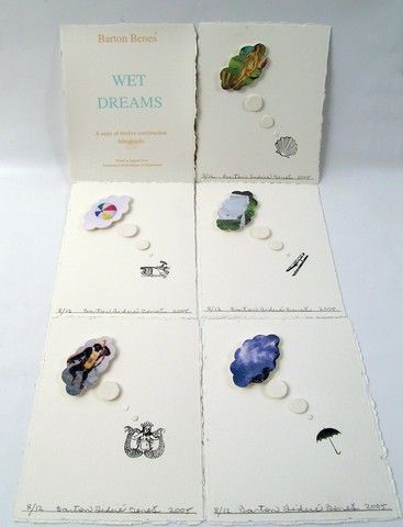 New York artist Barton Lidice Benes became famous for his amazing mix-media works. One of his most fever admirers, collectors and benefactors was Larry Hagman, who had one of Benes largest private collection. This is one of Hagman's pieces. It is a "covered" box entitled “Wet Dreams” (2005) and includes materials such as a sea shells, pen and ink illustrations, a portable decoupage file box covered in seashell paper with embedded seashell on front. There are fourteen individual signed illustrated pieces filed inside the box. Box Size: 9"x11 1/4" (with lid is closed). Illustrations are 10 1/2 "x 8 1/4". Professionally appraised at $2,500.