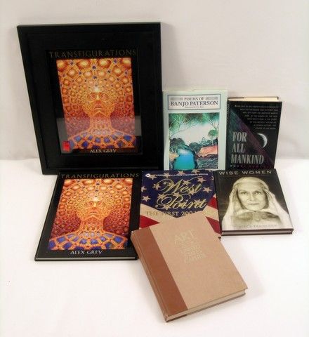 "Art in the United States Capitol" personally autographed book, Joyce Tenneson "Wise Women" personally autographed book, Alex Grey "Transfigurations" personally autographed book, "West Point The First 200 Years" personally autographed book, Harry Hurt III "For All Mankind" personally autographed book, "Poems of Banjo Patterson" personally autographed book, and framed "Transfigurations" book cover.