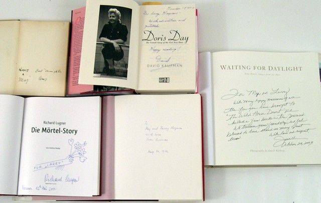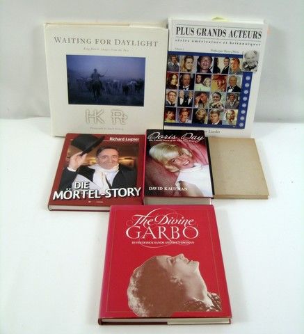 David Kaufman "Doris Day The Untold Story of the Girl Next Door" personally autographed book, Prins Wilhelm "Obekant Stad" personally autographed book, Frederick Sands and Sven Broman "The Devine Garbo" personally autographed book, Richard Lugner "Die Mortel-Story" personally autographed book, Didier Liardet "Plus Grands Acteurs" book, and Janell Kleberg "Waiting For Daylight" personally autographed book.