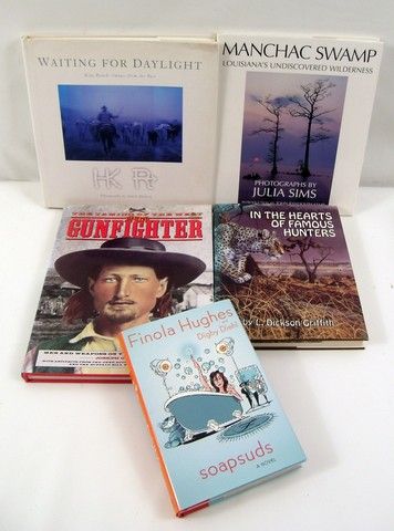 Finola Hughes and Digby Diehl "Soapsuds" personally autographed book, L. Dickson Griffith "In The Hearts of Famous Hunters" personally autographed book, Julia Sims "Manchac Swamp" personally autographed book, Joseph G. Rosa "Age of the Gunfighter The Taming of the West" personally autographed book, and Janell Kleberg "Waiting For Daylight" personally autographed book