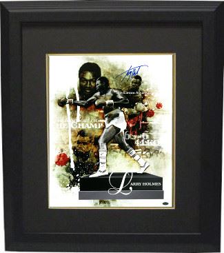 Larry Holmes' left jab is considered one of the greatest weapons in the history of sports. He was the WBC Heavyweight Champion from 1978 to 1983, The Ring Heavyweight Champion from 1980 to 1985, and the IBF Heavyweight Champion from 1983 to 1985. He made twenty successful title defenses. Holmes won his first forty-eight professional bouts, including victories over Ken Norton, Muhammad Ali, Gerry Cooney, and Tim Witherspoon. He is frequently ranked by many boxing experts as one of the greatest heavyweight fighters of all-time. Larry Holmes has hand autographed this 16x20. Leaf Authentics Hologram and Certificate of Authenticity from Athlon Sports. Custom Black Mat and Premium Black Color Framed as shown.