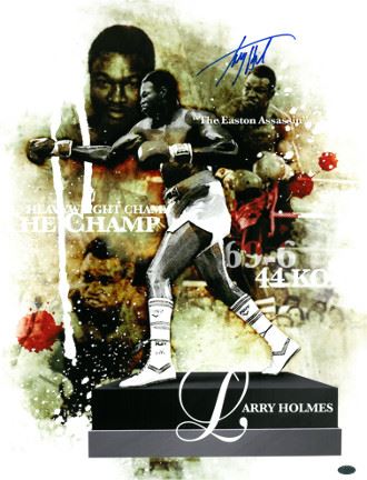 Larry Holmes' left jab is considered one of the greatest weapons in the history of sports. He was the WBC Heavyweight Champion from 1978 to 1983, The Ring Heavyweight Champion from 1980 to 1985, and the IBF Heavyweight Champion from 1983 to 1985. He made twenty successful title defenses. Holmes won his first forty-eight professional bouts, including victories over Ken Norton, Muhammad Ali, Gerry Cooney, and Tim Witherspoon. He is frequently ranked by many boxing experts as one of the greatest heavyweight fighters of all-time. Larry Holmes has hand autographed this 16x20. Leaf Authentics Hologram and Certificate of Authenticity from Athlon Sports.