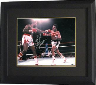 Larry Holmes' left jab is considered one of the greatest weapons in the history of sports. He was the WBC Heavyweight Champion from 1978 to 1983, The Ring Heavyweight Champion from 1980 to 1985, and the IBF Heavyweight Champion from 1983 to 1985. He made twenty successful title defenses. Holmes won his first forty-eight professional bouts, including victories over Ken Norton, Muhammad Ali, Gerry Cooney, and Tim Witherspoon. He is frequently ranked by many boxing experts as one of the greatest heavyweight fighters of all-time. Larry Holmes has hand autographed this 16x20 vs Muhammad Ali with Easton Assassin inscription. Leaf Hologram and Certificate of Authenticity from Athlon Sports. Custom Black Mat and Premium Black Frame as shown.