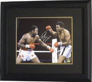Larry Holmes' left jab is considered one of the greatest weapons in the history of sports. He was the WBC Heavyweight Champion from 1978 to 1983, The Ring Heavyweight Champion from 1980 to 1985, and the IBF Heavyweight Champion from 1983 to 1985. He made twenty successful title defenses. Holmes won his first forty-eight professional bouts, including victories over Ken Norton, Muhammad Ali, Gerry Cooney, and Tim Witherspoon. He is frequently ranked by many boxing experts as one of the greatest heavyweight fighters of all-time. Larry Holmes has hand autographed this 16x20 vs Muhammad Ali with Easton Assassin inscription. Leaf Hologram and Certificate of Authenticity from Athlon Sports. Custom Black Mat and Premium Black Color Framed as shown.