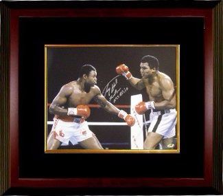 Larry Holmes' left jab is considered one of the greatest weapons in the history of sports. He was the WBC Heavyweight Champion from 1978 to 1983, The Ring Heavyweight Champion from 1980 to 1985, and the IBF Heavyweight Champion from 1983 to 1985. He made twenty successful title defenses. Holmes won his first forty-eight professional bouts, including victories over Ken Norton, Muhammad Ali, Gerry Cooney, and Tim Witherspoon. He is frequently ranked by many boxing experts as one of the greatest heavyweight fighters of all-time. Larry Holmes has hand autographed this 16x20 vs Muhammad Ali with Easton Assassin inscription. MAB Hologram and Certificate of Authenticity from Athlon Sports. Custom Black Mat and Premium Mahogany Color Framed as shown.