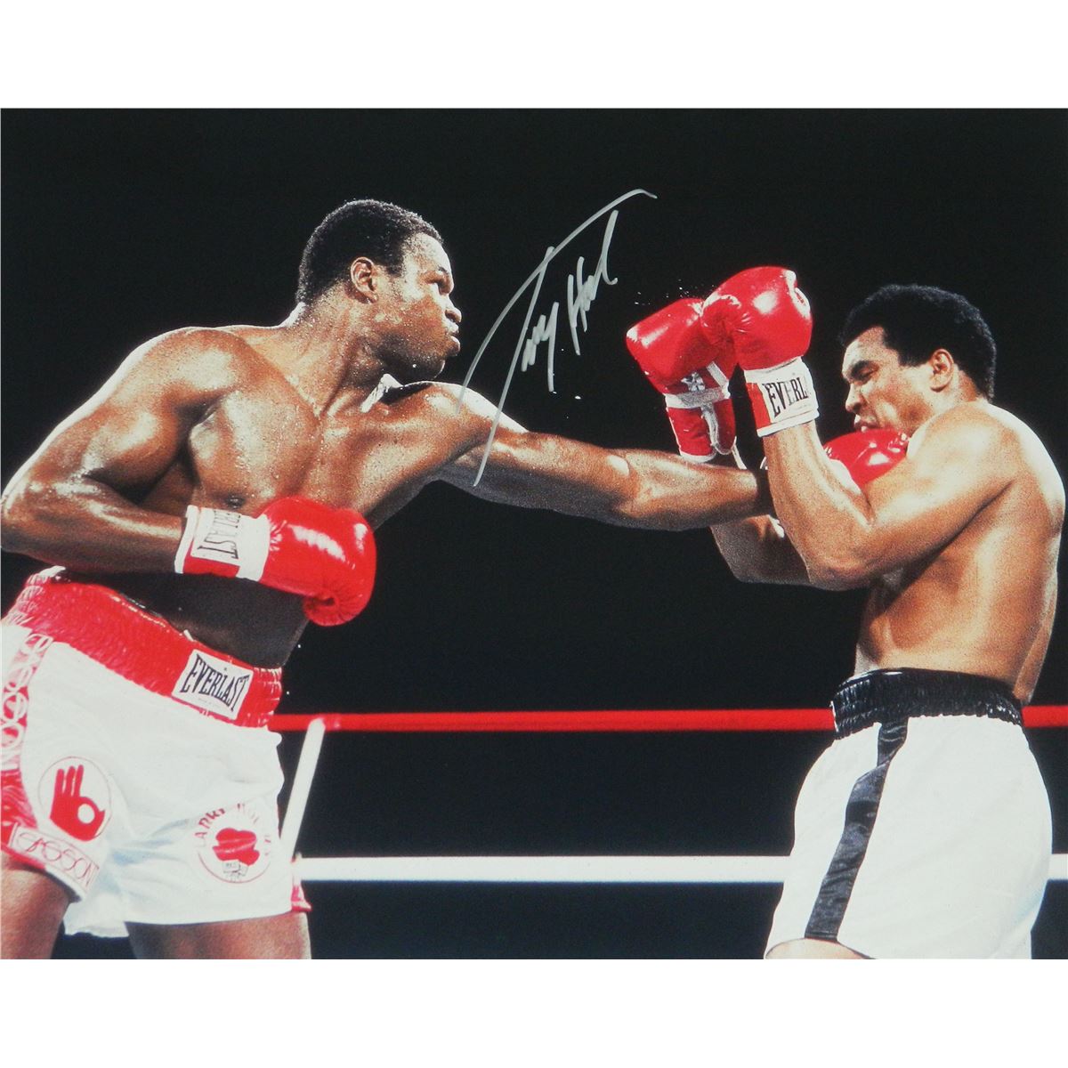 Larry Holmes signed boxing puching Muhammad Ali action 16x20 photo. Item comes with a Schwartz Sports Memorabilia tamper-proof numbered hologram and Certificate of Authenticity which can be verified online.