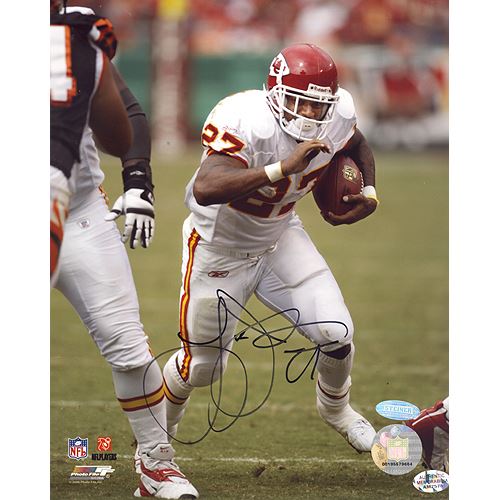 Larry Johnson Chiefs Action 8X10 Photo (AM Auth) (Imperfect)