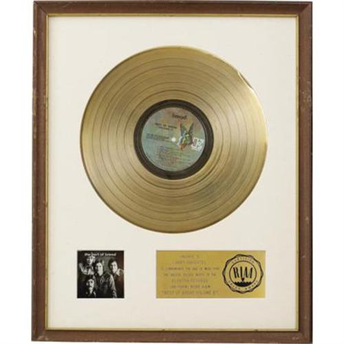 <B>Larry Knechtel</B></I> <B><I>Best of Bread Volume II</B></I></B></I> <B>RIAA Gold Album Award.</B></I> Scarcely more than a year after the band's first greatest hits album went Gold, a second volume followed suit. This award was presented to keyboardist Larry Knechtel to commemorate the sale of more than $1 million worth of album copies. Framed to an overall size of 17.5" x 21.5" and in Very Fine to Excellent condition with some mild wear to the frame. <I>From the Larry Knechtel Collection.</B></I><BR><BR><b>Shipping:</b> Framed - with Glass, Medium (<a target="_blank" href="http://www.heritageauctions.com/common/shipping.php">view shipping information</a>)