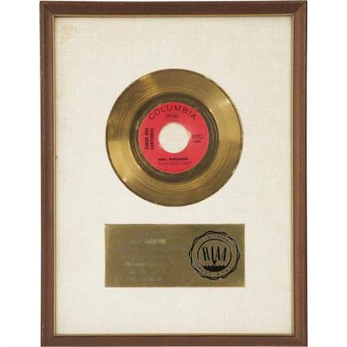 <B>Larry Knechtel <I>Mrs. Robinson</B></I> RIAA Gold Single Award.</B></I> The song from the movie <I>The Graduate</B></I> won Record of the Year for Simon & Garfunkel, and the Recording Industry Association of America presented this award to musician-contributor Larry Knechtel to commemorate the sale of more than one million copies. Framed to an overall size of 13" x 17" and in Very Fine to Excellent condition with some mild wear to the frame. <I>From the Larry Knechtel Collection.</B></I><BR><BR><b>Shipping:</b> Framed - with Glass, Small (<a target="_blank" href="http://www.heritageauctions.com/common/shipping.php">view shipping information</a>)