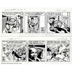 Larry Lieber - Original Comic Strip Art for The Amazing Spider-Man Daily, Lot of 5 (King Features Syndicate, 1996). An all-in-the-family collaboration (Stan Lee and Larry Lieber are brothers), offered here are five great examples of the long-running Spider-Man newspaper strip. Each piece in this lot measures approximately 14" x 5.5", with an image area of approximately 13" x 4". In excellent condition, each strip offers great images of Spider-Man, with one co-featuring the Sub-Mariner. A great addition to any Spider-collection. Important notice: We expect to be auctioning lots at the rate of 200-250 per hour. Sometimes eBay Premier live bid software cannot keep up with that pace, so we strongly recommend that you place a realistic proxy bid now as insurance to avoid disappointment. Also please note that all Heritage/CAA lots purchased through eBay Premier carry a 20% Buyer's Premium. Please make sure you read the Terms and Conditions.
