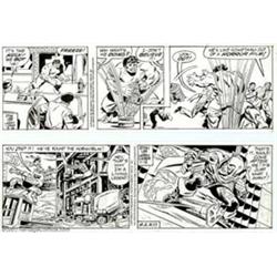 Larry Lieber - Original Comic Strip Art for The Amazing Spider-Man Daily, Lot of 5 (King Features Syndicate, 1989, 1994). You say you want action? You say you want suspense? You say you want thrills? We say you've come to the right place. Offered here are five original Spider-Man dailies from the pens of Stan Lee and Larry Lieber, and featuring guest appearances by the Hulk, the Hobgoblin, and Mary Jane Watson-Parker. Each strip, in excellent condition, measures approximately 13.25" x 4.25". This is an excellent addition to any comic strip or Spider-Man collection. Important notice: We expect to be auctioning lots at the rate of 200-250 per hour. Sometimes eBay Premier live bid software cannot keep up with that pace, so we strongly recommend that you place a realistic proxy bid now as insurance to avoid disappointment. Also please note that all Heritage/CAA lots purchased through eBay Premier carry a 20% Buyer's Premium. Please make sure you read the Terms and Conditions.
