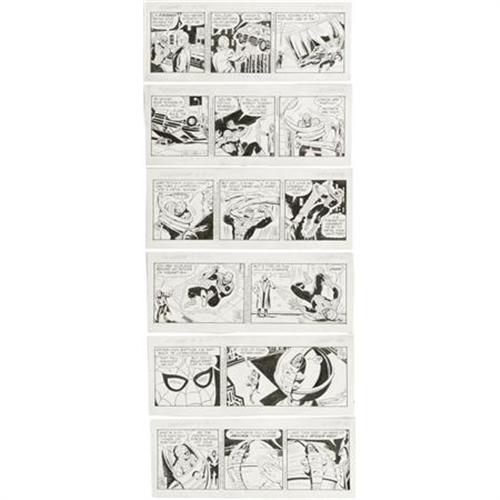 <B>Larry Lieber - The Amazing Spider-Man Daily Comic Strip Original Art, Group of 6 (King Features Syndicate, 2001).</B></I> Spider-Man and Magneto mix it up in these six consecutive dailies, dated 6-4, 6-5, 6-6, 6-7, 6-8, and 6-9-2001. The image area of each strip measures 13" x 4", and the art averages Excellent condition.<BR><BR><b>Shipping:</b> Flat Material, Small (<a target="_blank" href="http://www.heritageauctions.com/common/shipping.php">view shipping information</a>)