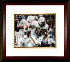 Larry Little was elected to the National Football League's Hall of Fame. He played with the National Football League Dolphins from 1970 through 1980. Little was a key contributor to the success of the Dolphins' punishing running attack of the early and mid 1970's, which featured Larry Csonka, Mercury Morris, and Jim Kiick. In 1999, he was ranked number 79 on The Sporting News' list of the 100 Greatest Football Players. Larry Little has hand autographed this Miami Dolphins 16x20 Color Photo with HOF 93 inscription. Custom White Mat and Premium Mahogany Frame as shown. GTSM Hologram and Certificate of Authenticity from Athlon Sports.