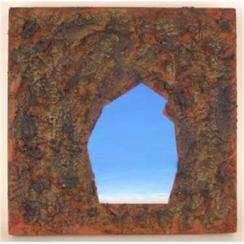 9 x 9 inches (23 x 23 cm) oil, acrylic, and mixed media on wood. Larry Mark Goldblatt is an artist who has been working in New York City for the past 30 years. He graduated from NYU and attended the Art Students' League. His work is in numerous private collections and has been shown in several galleries. His recent paintings in oil and wax on wood panels are evocative landscapes. The paint is built up layer upon layer, creating a rich patina. Some works incorporate rusted metal, carved or tribal figures, and ethnographic objects. The marriage of object and flat scenic surface create a tension - the works become a crossover between painting and sculpture. The Museum of Fine Arts in St. Petersburg, Florida has just recently acquired a Goldblatt painting for their permanent collection.