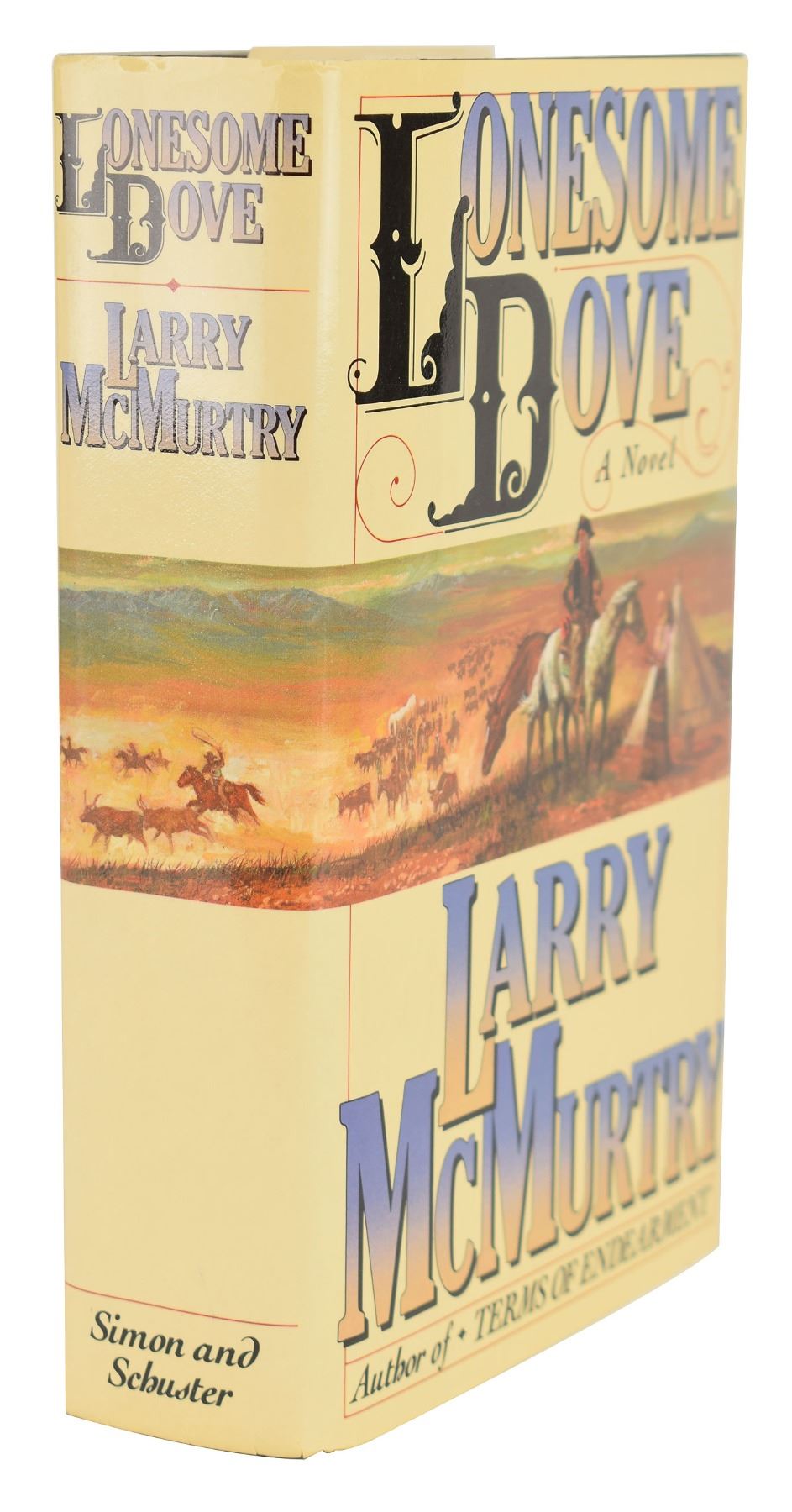Signed book: Lonesome Dove. First edition, first printing. NY: Simon & Schuster, 1985. Hardcover with dust jacket, 6.5 x 9.5, 843 pages. Signed and inscribed on the first free end page in black ballpoint, "For Joe Collins, Larry McMurtry." In fine condition.